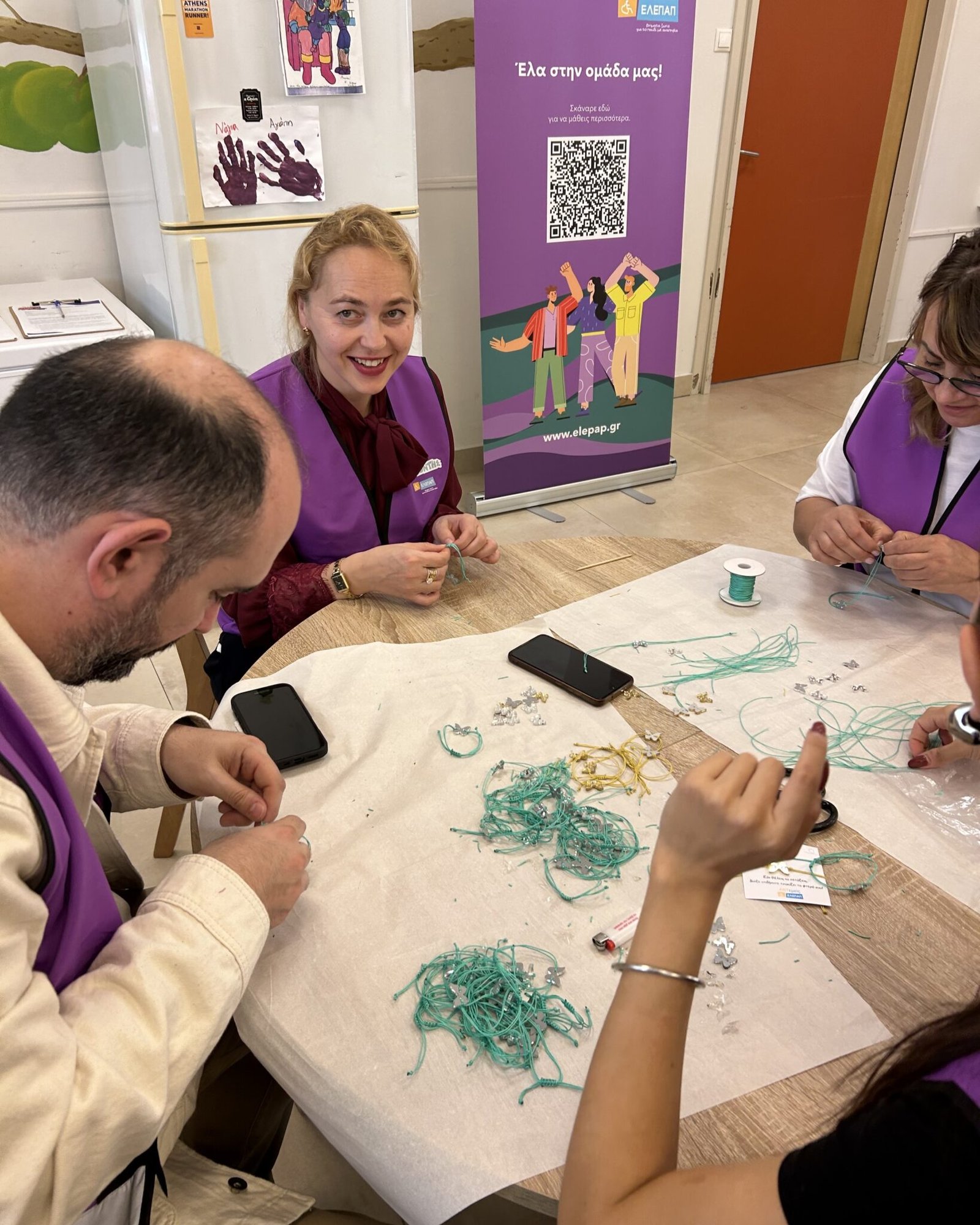 Η εταιρεία χρηματοδότησε την αγορά όλων των απαραίτητων υλικών και οι εργαζόμενοί της φόρεσαν τα γιλέκα των Ωραίων Εθελοντών της ΕΛΕΠΑΠ, συμμετέχοντας σε ένα ζεστό, γιορτινό εργαστήριο. Με χαμόγελο και ομαδική διάθεση, δημιούργησαν περισσότερα από 200 χειροποίητα στολίδια και γούρια, ακολουθώντας τις καθοδηγήσεις και τη φροντίδα των εθελοντριών της ΕΛΕΠΑΠ.