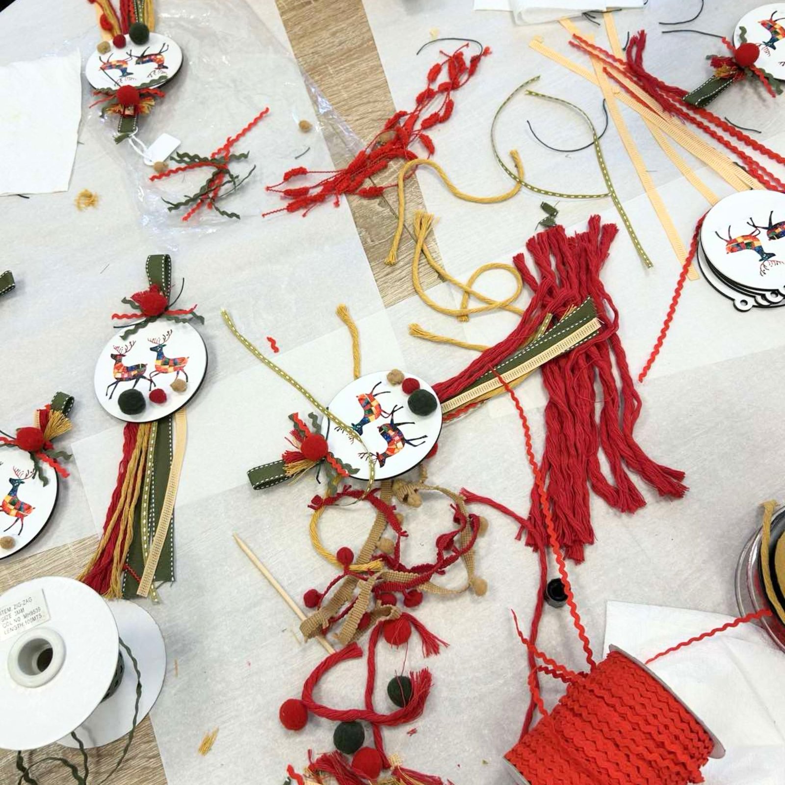 Ξύλινα στολίδια με γιορτινές κορδέλες, κεραμικά γούρια και βραχιολάκια γέμισαν τον χώρο με χρώμα και έμπνευση. Ξεχώρισαν ιδιαίτερα οι χειροποίητες πεταλούδες της ARTεμείς, σύμβολα ελπίδας και νέας αρχής, που μετέφεραν το διαχρονικό μήνυμα της συλλογικότητας και της πράξης αγάπης.