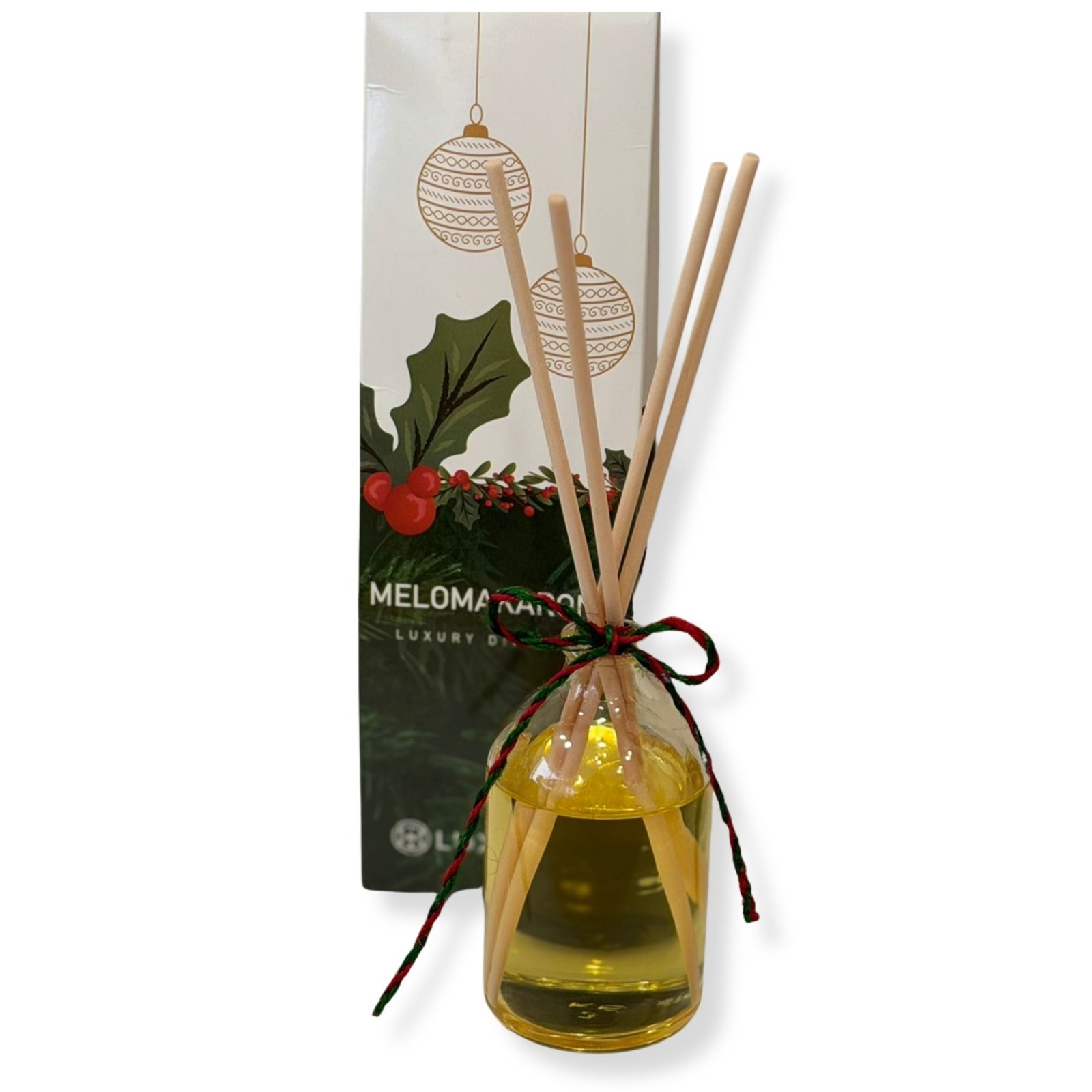 Το melomakarono είναι ένα αρωματικό χώρου εμπνευσμένο από τη γλυκιά μυρωδιά του μελομακάρονου. Η μοντέρνα και κομψή συσκευασία του συνδυάζει φυσικά στοιχεία και γιορτινά ζωντανά χρώματα, αποπνέοντας τη χριστουγεννιάτικη ατμόσφαιρα. Ιδανικό για δώρο σε όσους αναζητούν ποιότητα και ευεξία ή για διακοσμητικό για το σπίτι σας.
