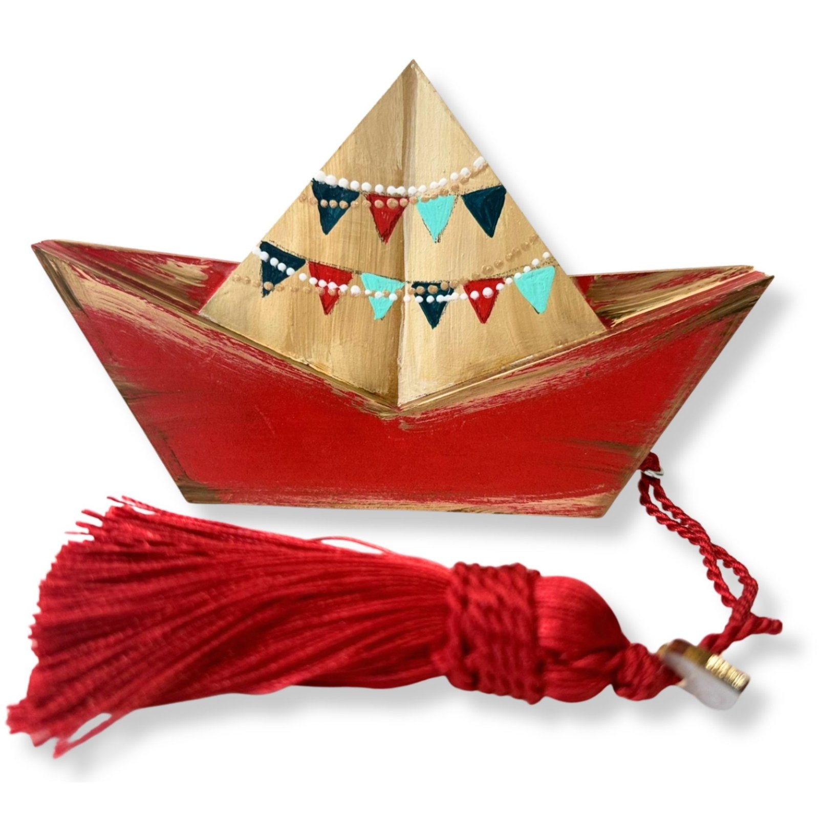 Για τους λάτρεις της παράδοσής μας, ξύλινη βαρκούλα κόκκινη ζωγραφισμένη στο χέρι, που ταξιδεύει εσάς και τα αγαπημένα σας πρόσωπα στην καινούρια χρονιά. Ιδανικό για τη διακόσμηση του σπιτιού σας ή για δώρο.
