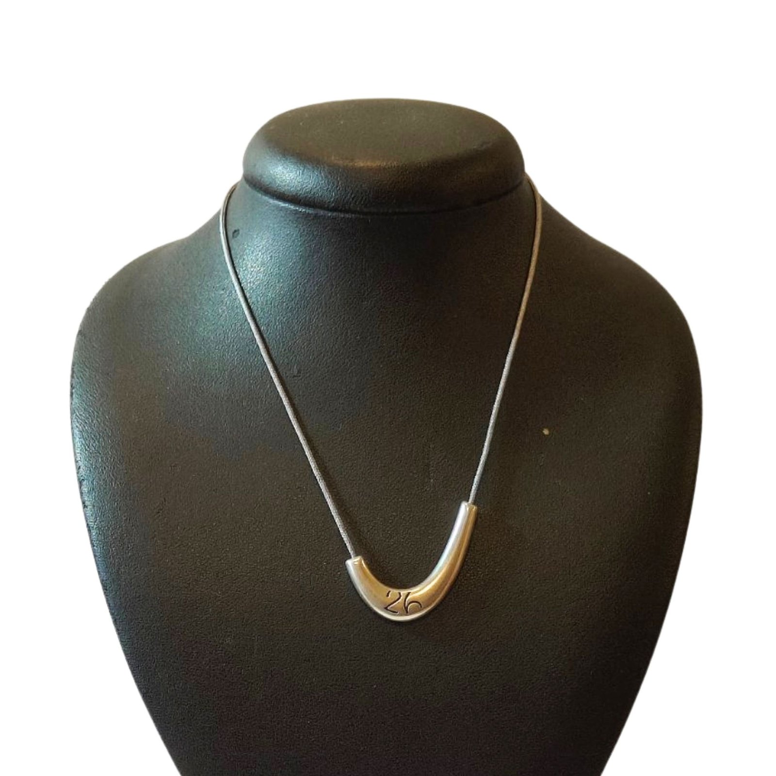 Λάμψτε τις γιορτινές μέρες με στυλ! Χειροποίητο κολιέ γούρι με επάργυρο μεταλλικό στοιχείο 26. Το λεπτό κορδόνι προσαρμόζεται εύκολα στο επιθυμητό ύψος. Ένα κομψό αξεσουάρ και παράλληλα ένα όμορφο δώρο για αγαπημένα πρόσωπα.