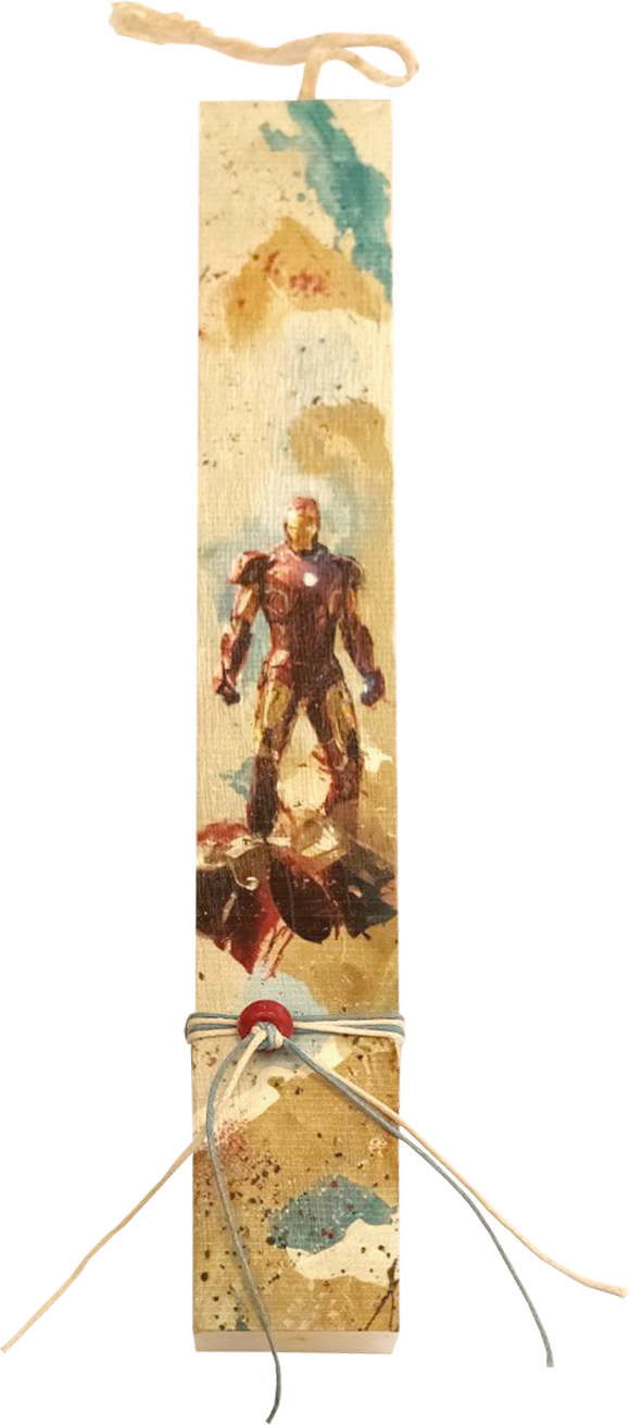 Ανακαλύψτε τη μοναδική πασχαλινή λαμπάδα με σχέδιο τον αγαπημένο ήρωα “Iroman ”, ιδανική για αυτούς που λατρεύουν τους σούπερ ήρωες. Η λαμπάδα είναι κατασκευασμένη από ποιοτικό πλακέ κερί και διακοσμημένη με υψηλής ανάλυσης εκτύπωση που προσφέρει έντονα χρώματα και ανθεκτικότητα. Τα κορδόνια σε ταιριαστές αποχρώσεις ολοκληρώνουν το σχέδιο, δημιουργώντας ένα εντυπωσιακό και μοντέρνο αποτέλεσμα. Ιδανική επιλογή για νονά και νονό που θέλουν να χαρίσουν ένα ξεχωριστό πασχαλινό δώρο ή για όσους λατρεύουν  αυτόν τον ήρωα.