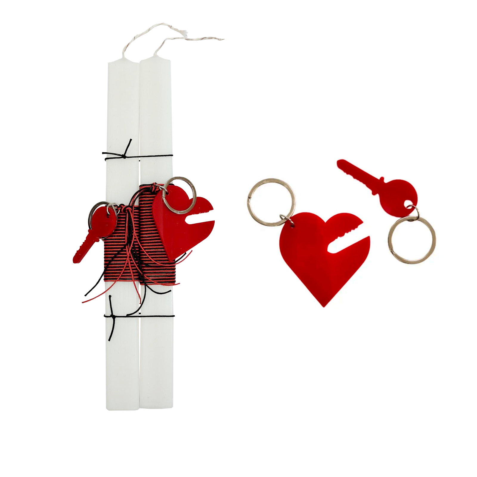 Πασχαλινή διπλή λαμπάδα για ζευγάρια! Δεμένες μαζί, προσφέρονται χαρίζοντας αγάπη και τύχη.Η κόκκινη καρδιά και το κόκκινο κλειδί γίνονται ξεχωριστά μπρελόκ αργότερα.