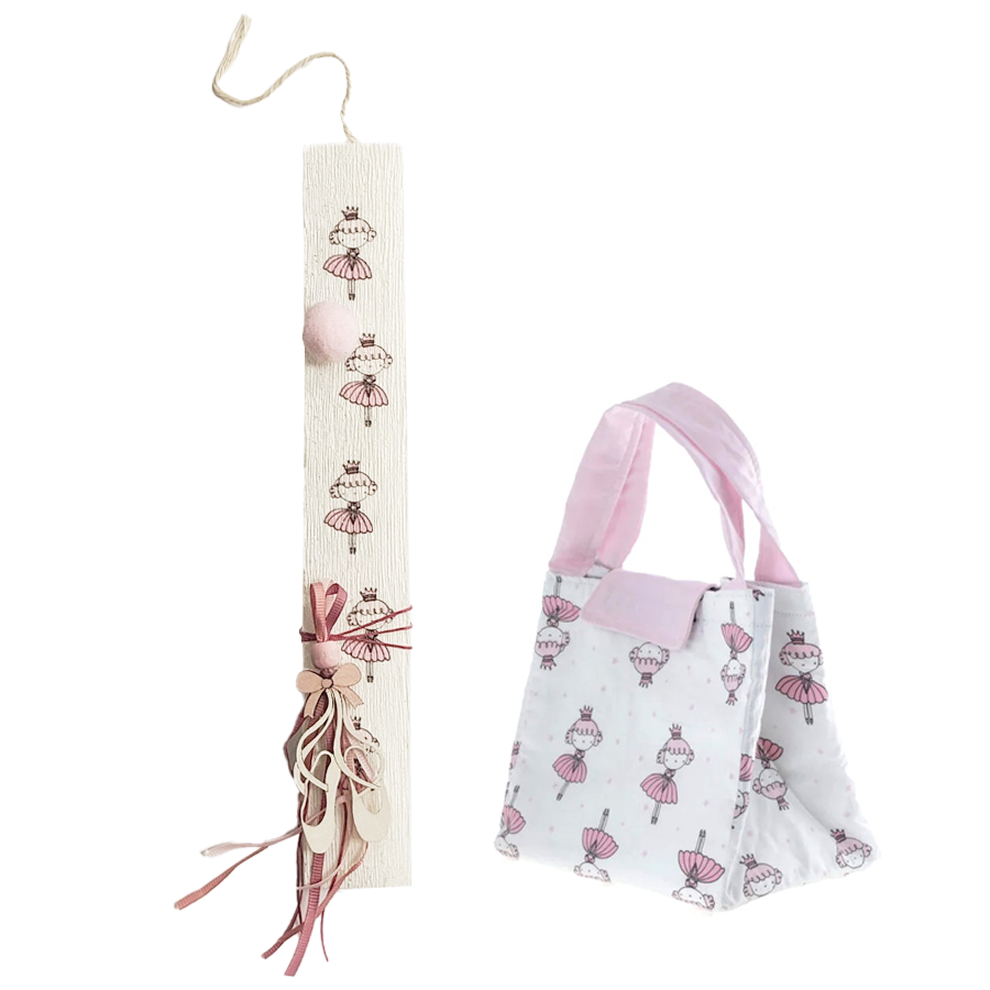 Χαρίστε ένα παραμυθένιο Πάσχα με ένα μοναδικό σετ λαμπάδας Πριγκίπισσα-Μπαλαρίνα και lunch bag στο ίδιο ονειρικό σχέδιο! Ένας συνδυασμός που ενώνει τη μαγεία του παραμυθιού με την κομψότητα του μπαλέτου, δημιουργώντας το απόλυτο πασχαλινό δώρο για μικρές πριγκίπισσες. Η σαγρέ πλακέ λευκή λαμπάδα έχει τυπωμένες χαριτωμένες μπαλαρίνες και είναι διακοσμημένη με πουέντ και ροζ κορδέλες, ενώ το παιδικό lunch bag είναι ασορτί δανικό για το σχολείο, τις βόλτες και τις εξωσχολικές δραστηριότητες.