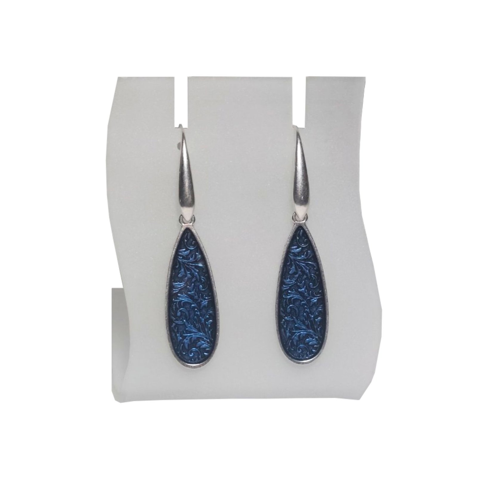 Υποδεχτείτε τη νέα χρονιά με στυλ! Σκουλαρίκια, σε σχήμα δάκρυ επάργυρα σε μπλε χρώμα, για να λάμπετε τις γιορτινές μέρες. Ένα κομψό αξεσουάρ και παράλληλα ένα όμορφο δώρο για αγαπημένα πρόσωπα.