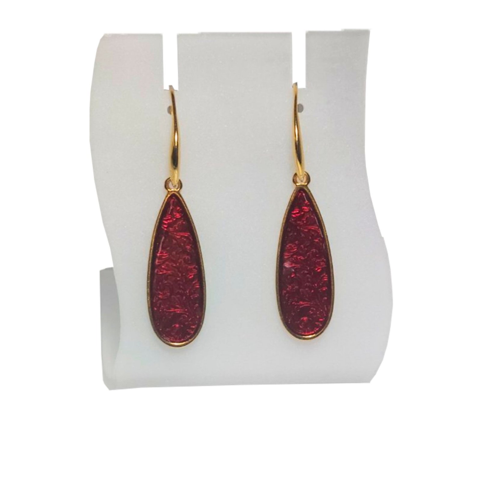 Υποδεχτείτε τη νέα χρονιά με στυλ! Σκουλαρίκια, σε σχήμα δάκρυ επίχρυσα σε κόκκινο χρώμα, για να λάμπετε τις γιορτινές μέρες. Ένα κομψό αξεσουάρ και παράλληλα ένα όμορφο δώρο για αγαπημένα πρόσωπα.