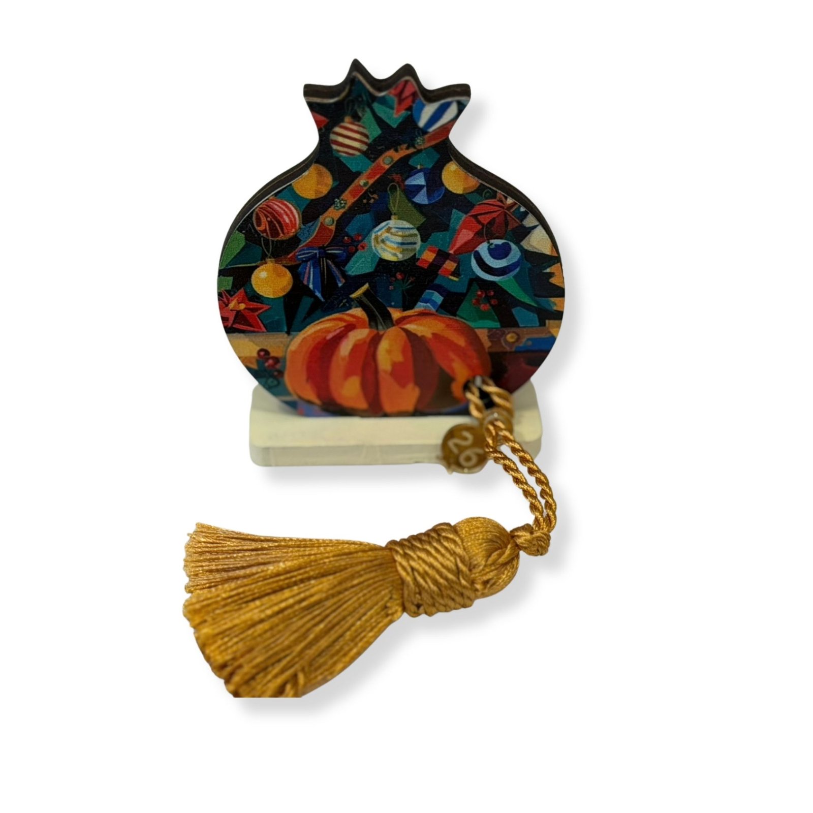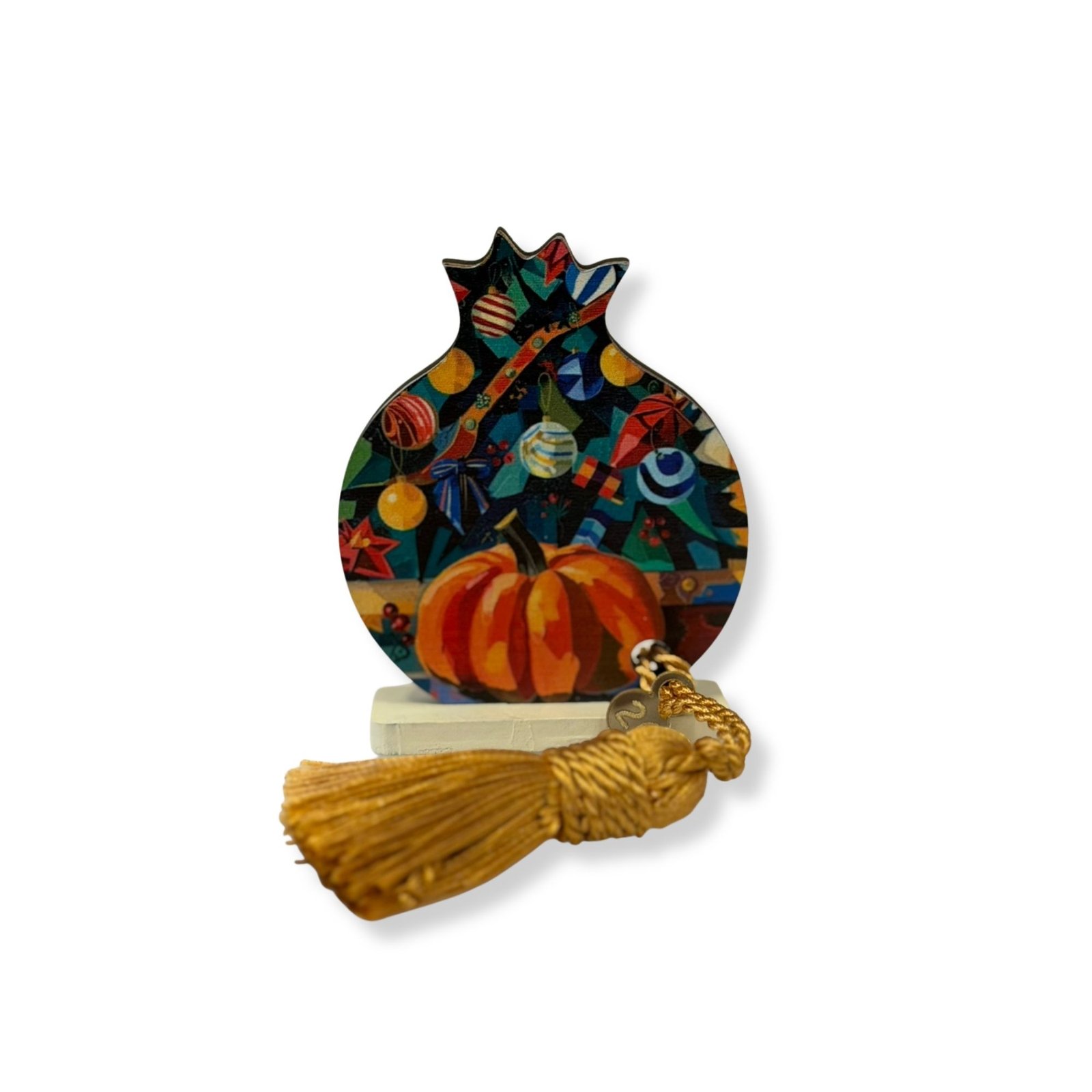 Aυτό το ιδιαίτερο ξύλινο διακοσμητικό σουβενίρ σε σχήμα ροδιού, απεικονίζει μία κολοκύθα. Κατασκευασμένο με προσοχή στη λεπτομέρεια και ζωντανές αποχρώσεις, αποτελεί ιδανική επιλογή για δώρο ή για να δώσετε μια κομψή νότα σε ράφι, γραφείο ή βιτρίνα. Η φούντα προσθέτει μια κομψή, χειροποίητη πινελιά, κάνοντάς το κομμάτι μοναδικό και ξεχωριστό. Ελαφρύ, πρακτικό και αισθητικά ευχάριστο, ταιριάζει σε κάθε διακόσμηση.